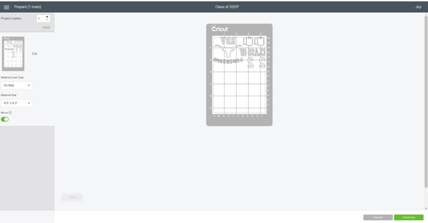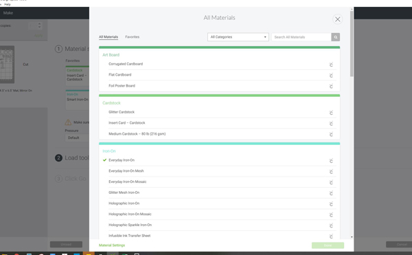 Make sure to choose the “On Mat” option along with “Everyday Iron On” before loading your materials in the machine.