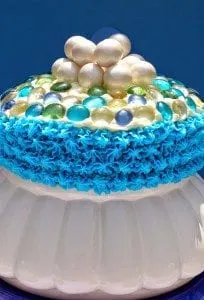 Juli tells me this was a fun summer time bubble themed party to celebrate 3-year old Anna’s birthday and a small cousin play date. Cake, cupcakes, blue jello and sugar dipped marshmallows all made for sweet snacking by the pool.