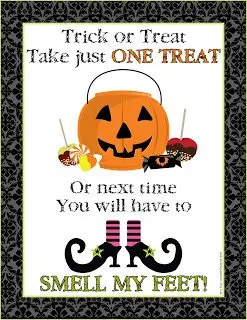 You can’t always be there to pass out candy so if you have to leave a bowl why not put out a cute sign too? Maybe, just maybe, some kids will actually heed your warning and not be a candy hog. Maybe. Happy Halloween!