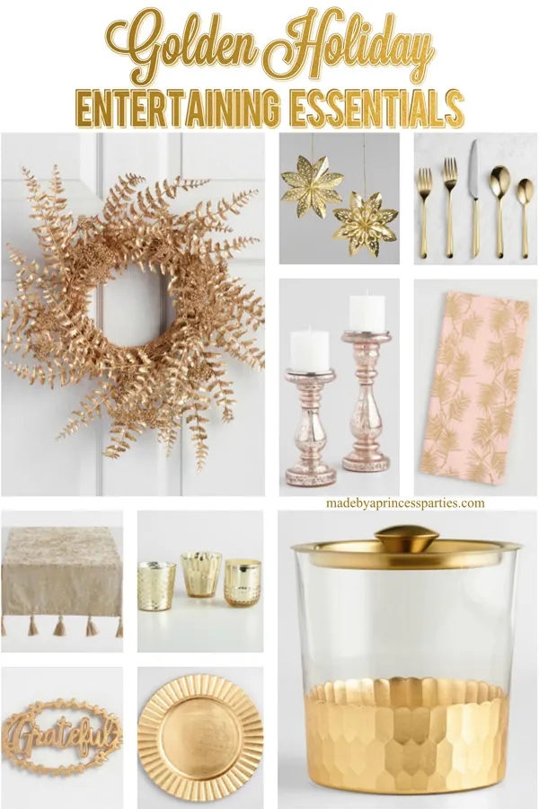 Cost Plus World Market has so many beautiful gold décor items in stock right now. Many years ago I found the prettiest napkins with gold trim. This year I’m decorating with a golden theme to match my napkins – so pretty! Here are a few of my favorite golden holiday entertaining essentials…