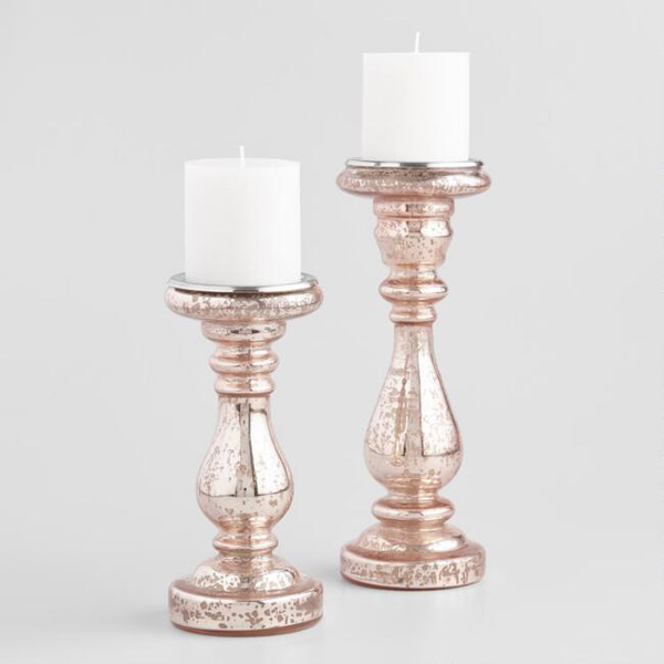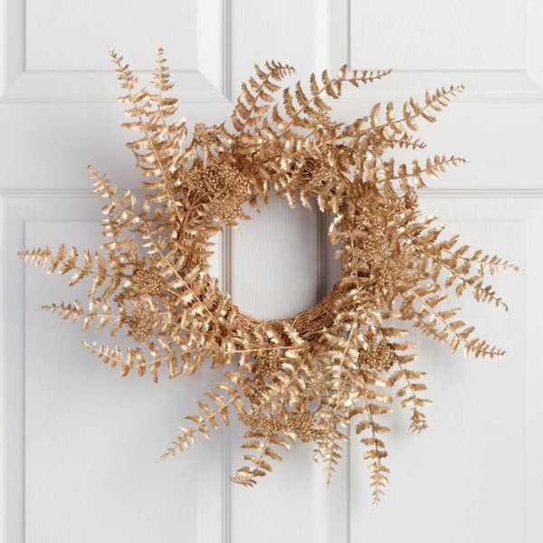 Gold Fern and Berry Wreath | Gold Mercury Votives | Pink and Gold Ombre Taper Candle | Gold Scalloped Paper Snowflakes | Rose Gold Mercury Candleholders | Silver and Gold Mercury Candles | Pre Lit Faux Gold Berries Tree