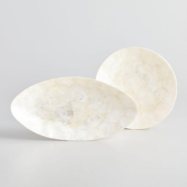 Gold Cheese Knives | Gold Sparkle Lacquer Tray | Grateful Trivet | White Capiz Serving Bowl | Gold and Marble Pedestal Stand | Gold and Marble Tray