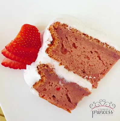 Last weekend I invited a couple of girlfriends over because I really wanted to make this cake and needed some friends to share it with. I was at a birthday party a couple weeks ago and had a wonderful slice of strawberry cake with lemon frosting. I couldn’t get that cake out of my head so I just had to make my own!